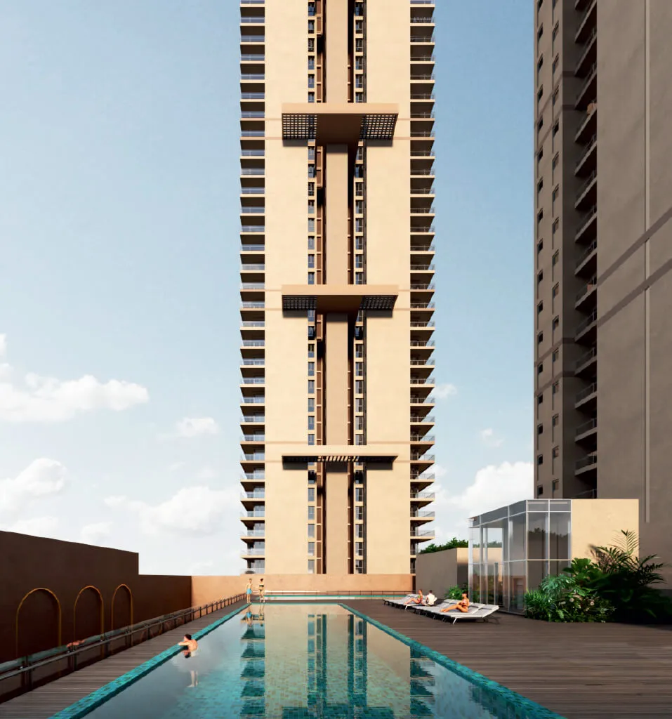 There are 2 high rise towers Ground + 41 Floor & Ground + 38 offers 360 degree view of the city skyline.